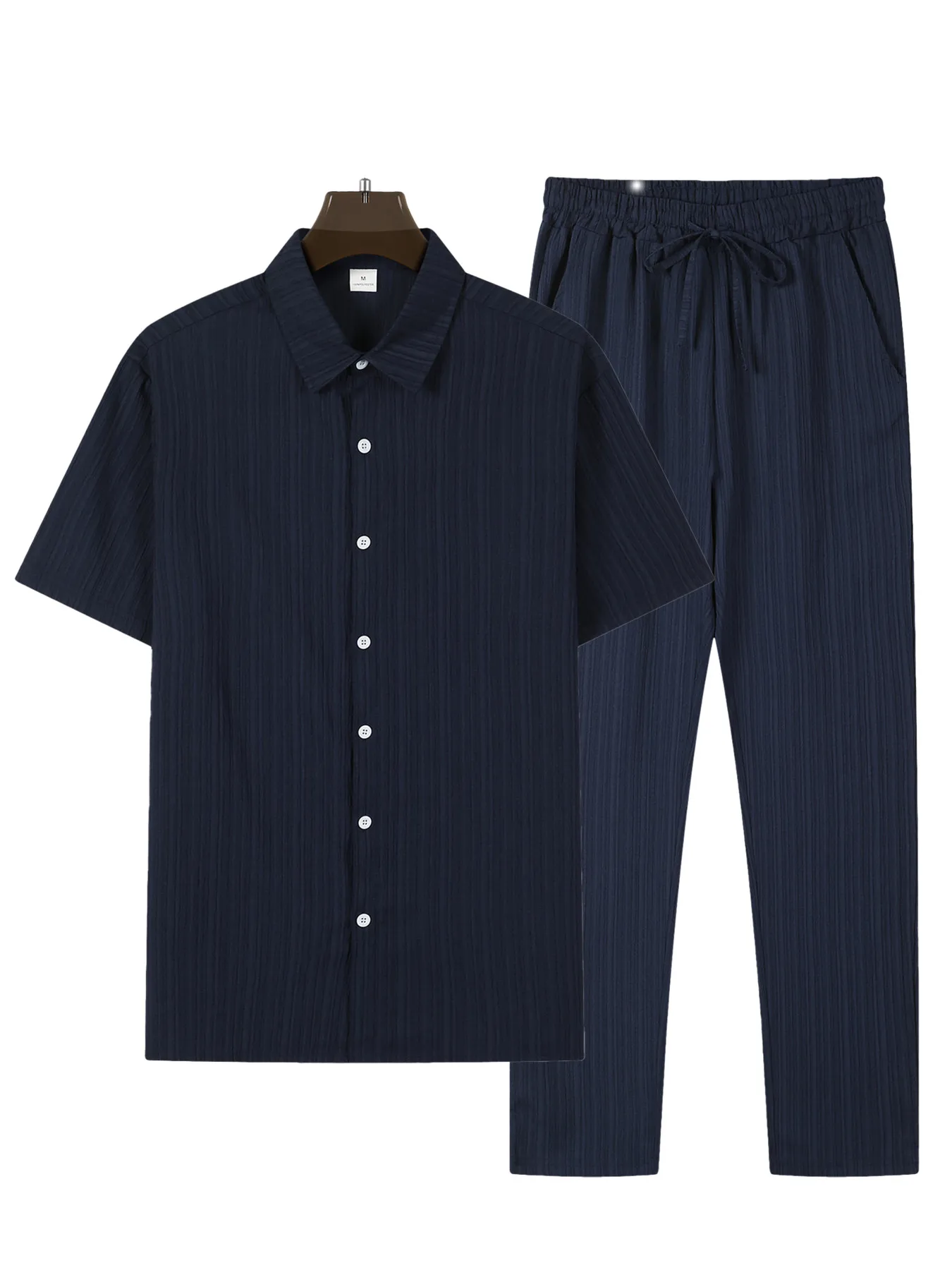 2024 Summer New Men's Solid Color Simple Short Sleeved Shirt And Pants Set Casual Home Comfortable Top And Pants Two-piece