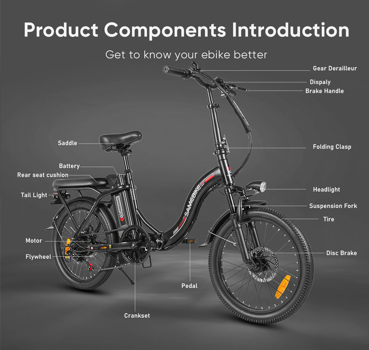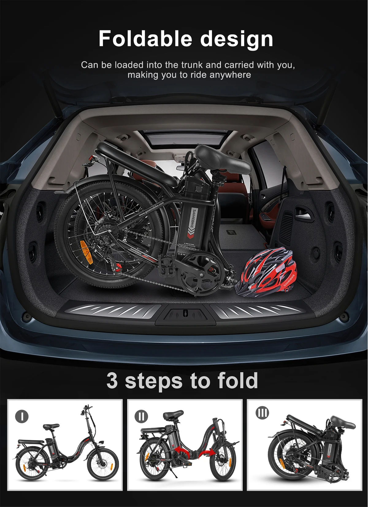 350W Powerful Rear Hub Motor 36V Lithium Battery 7 Speed Electric Folding City Moped Style Bike Steel Frame One Year Warranty