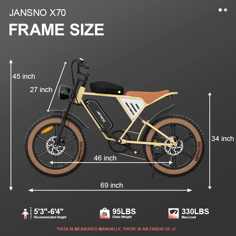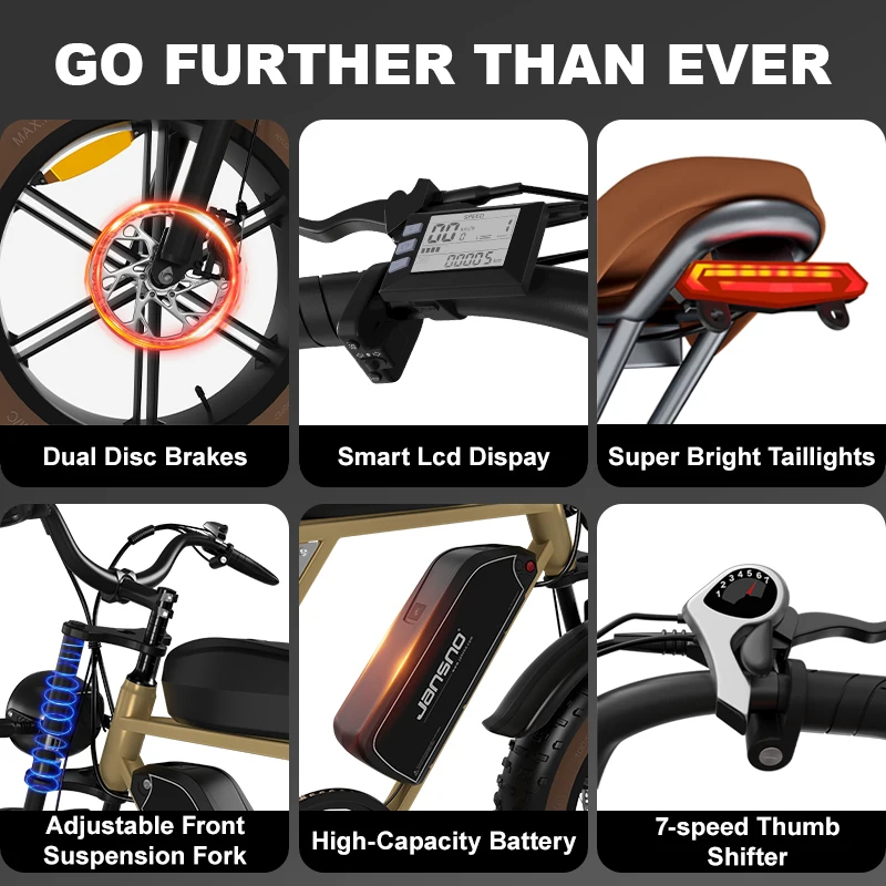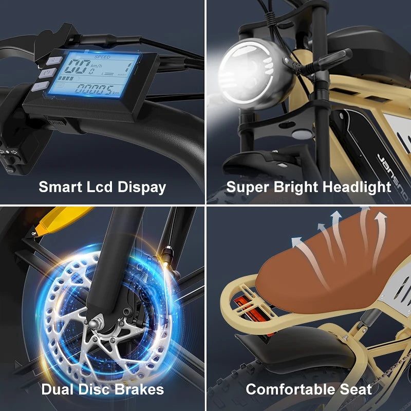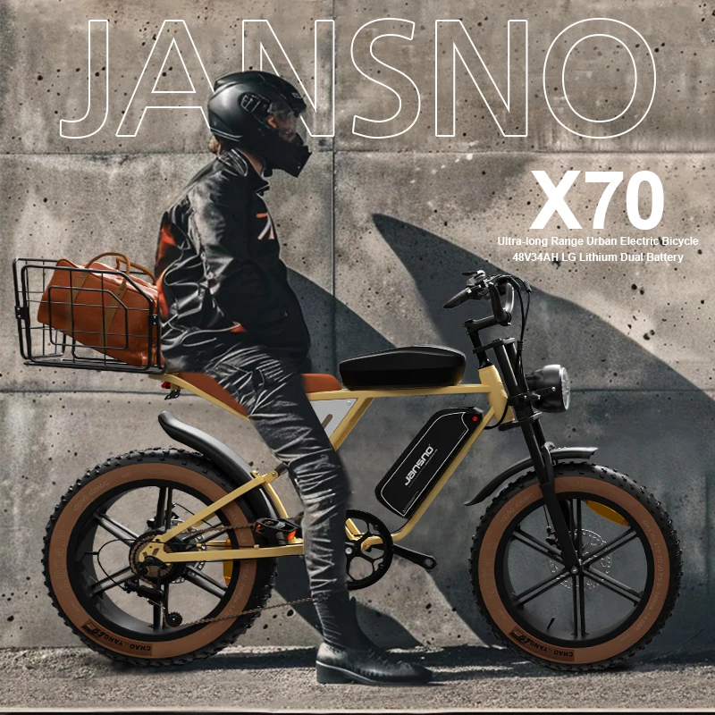JANSNO X70 All Terrain Fat Tire ebike 20"*4.0 Adult eBikes 30MPH 48V 34AH Dual motor 120 Mile Range Moped Style Electric Bike