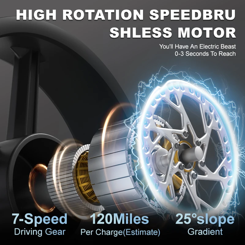 【STRONG POWER】— 750W High-speed brushless motor provides very strong power with a top speed of 30 mph/h.