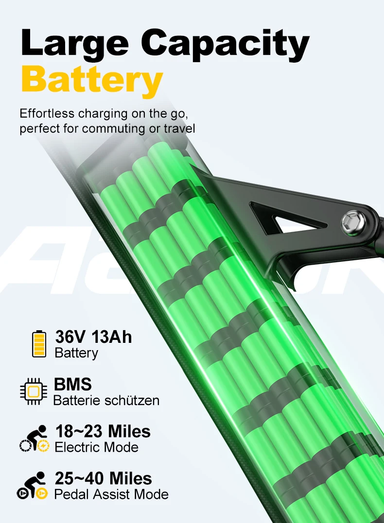 18-23 Miles Rang (Throttle Mode); 25-40 Miles Rang (PAS Mode) |