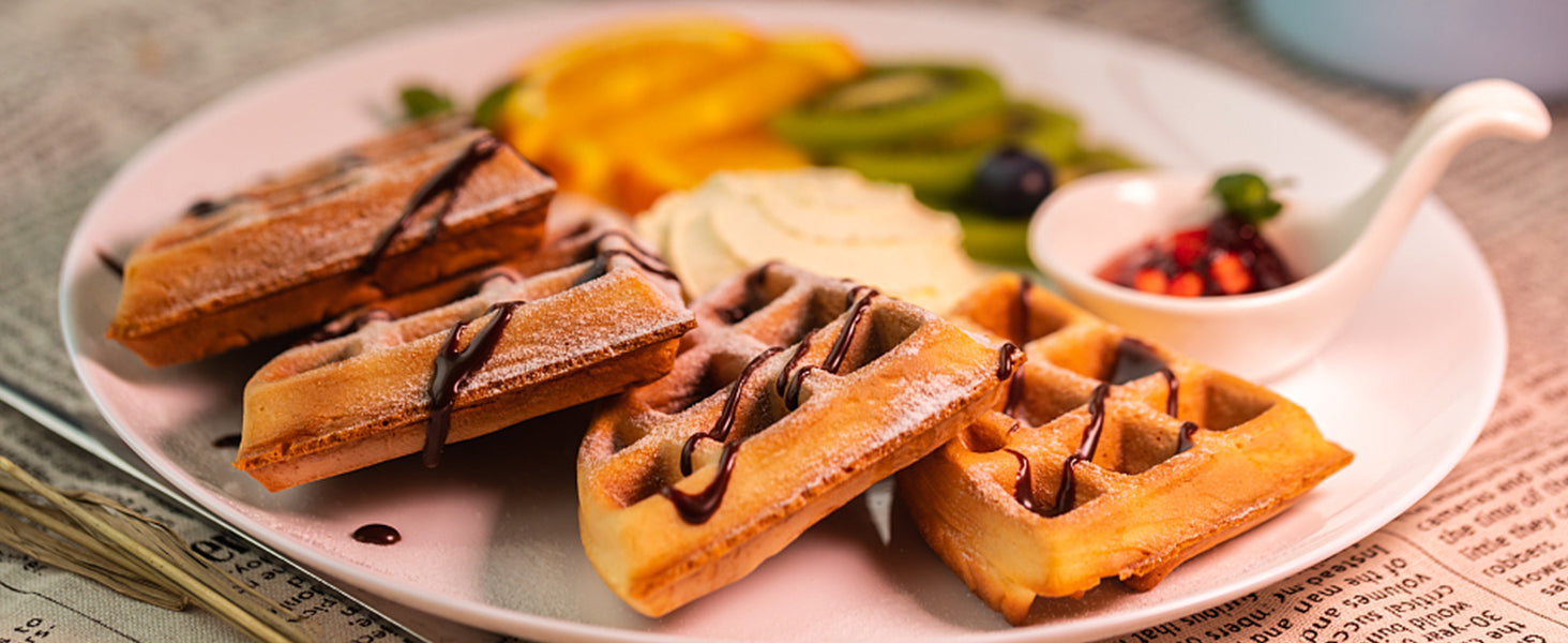 Built in Belgian-style waffle iron, which has deeper grid. So you can make and enjoy Belgian waffle at home!