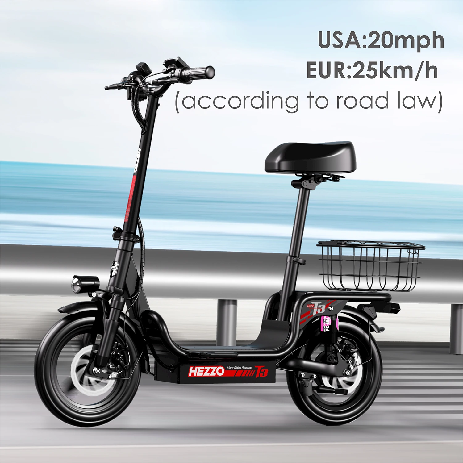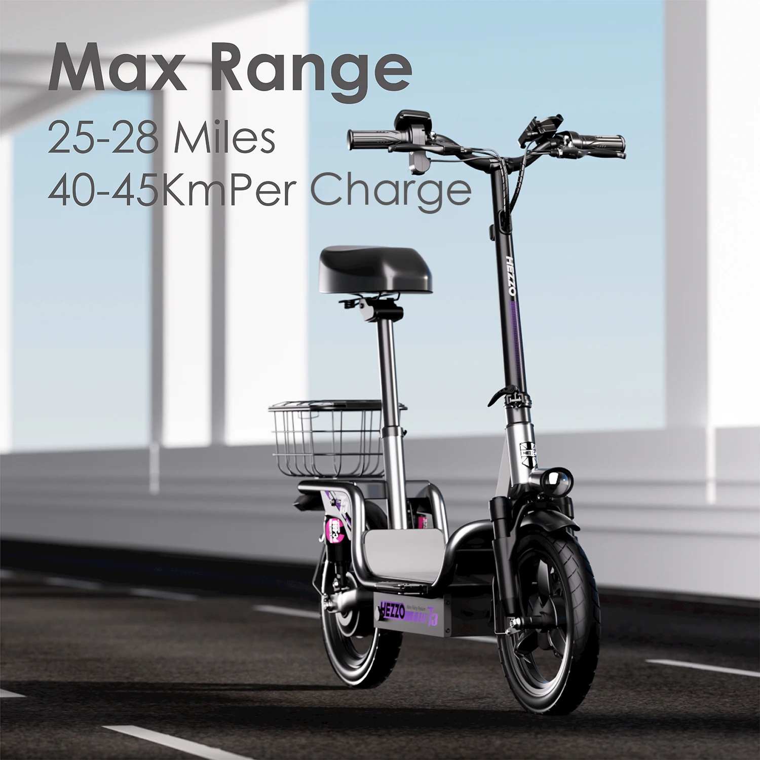 HEZZO T3 Escooter 14Inch 48V 500W Pet-Friendly Foldable Commute Scooter 15AH Lithium 60Km Moped With Basket EU UK US Warehouse