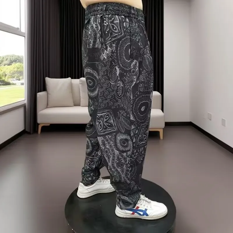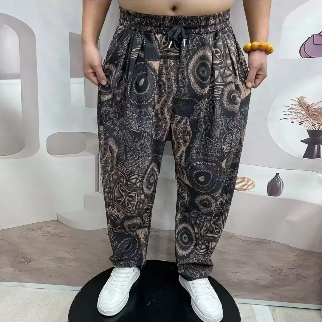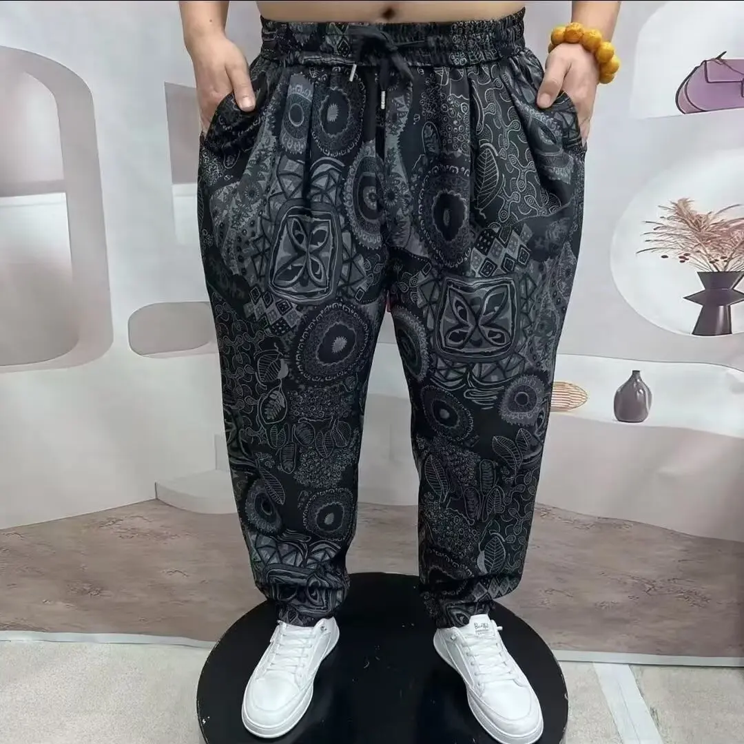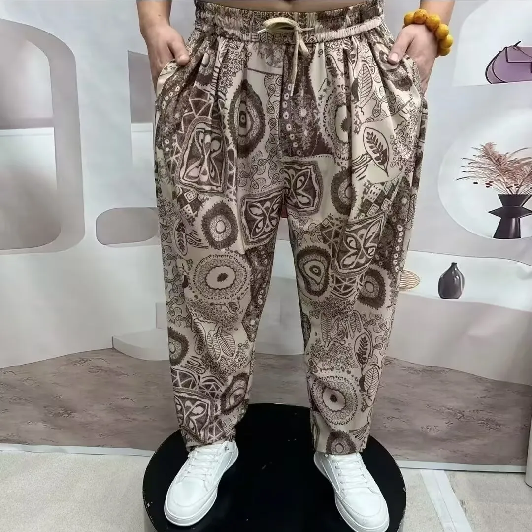 High-End Casual Harem Pants for Men Loose Comfortable Slimming Printed Polyester Fiber Summer Cool Sensation Faion Brand