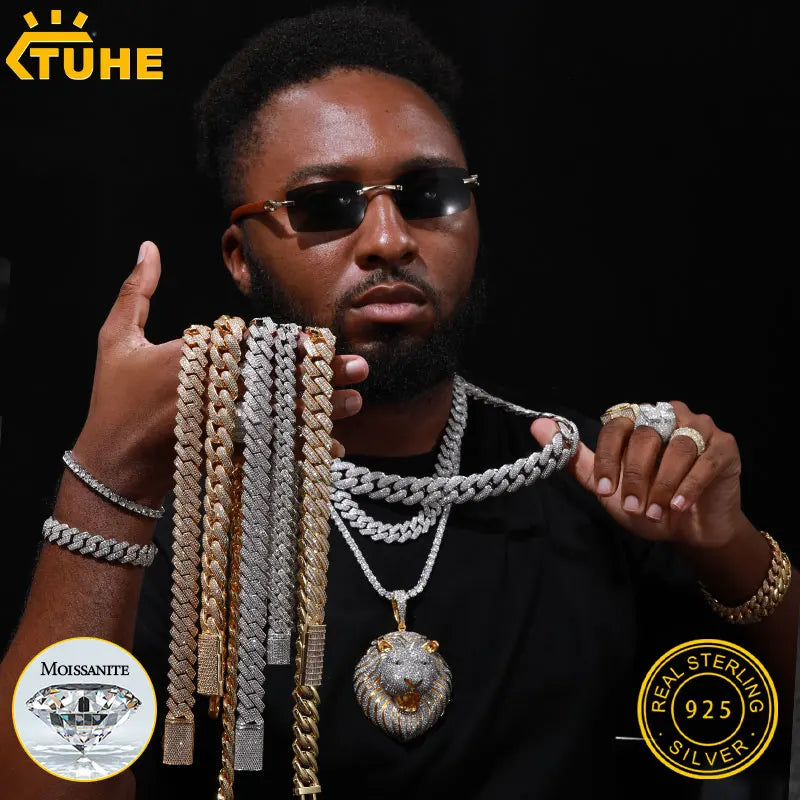 High Quality Unisex Cuban Chain VVS1 D Color Moissanite Necklace S925 Silver Chain For Men Women Hip Hop Jewelry