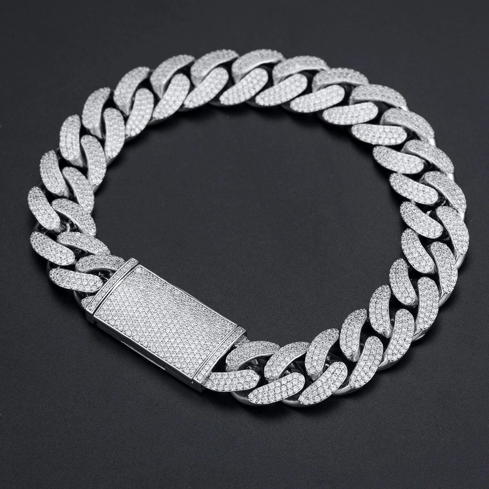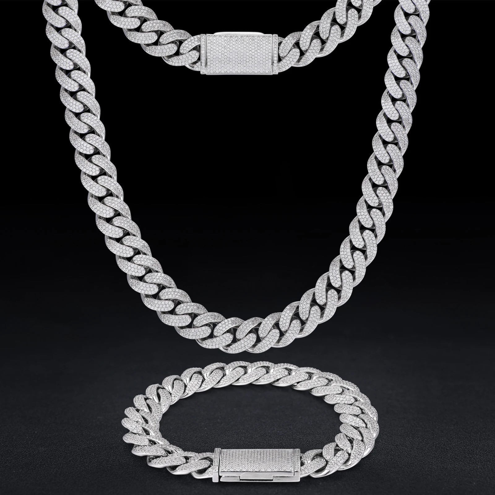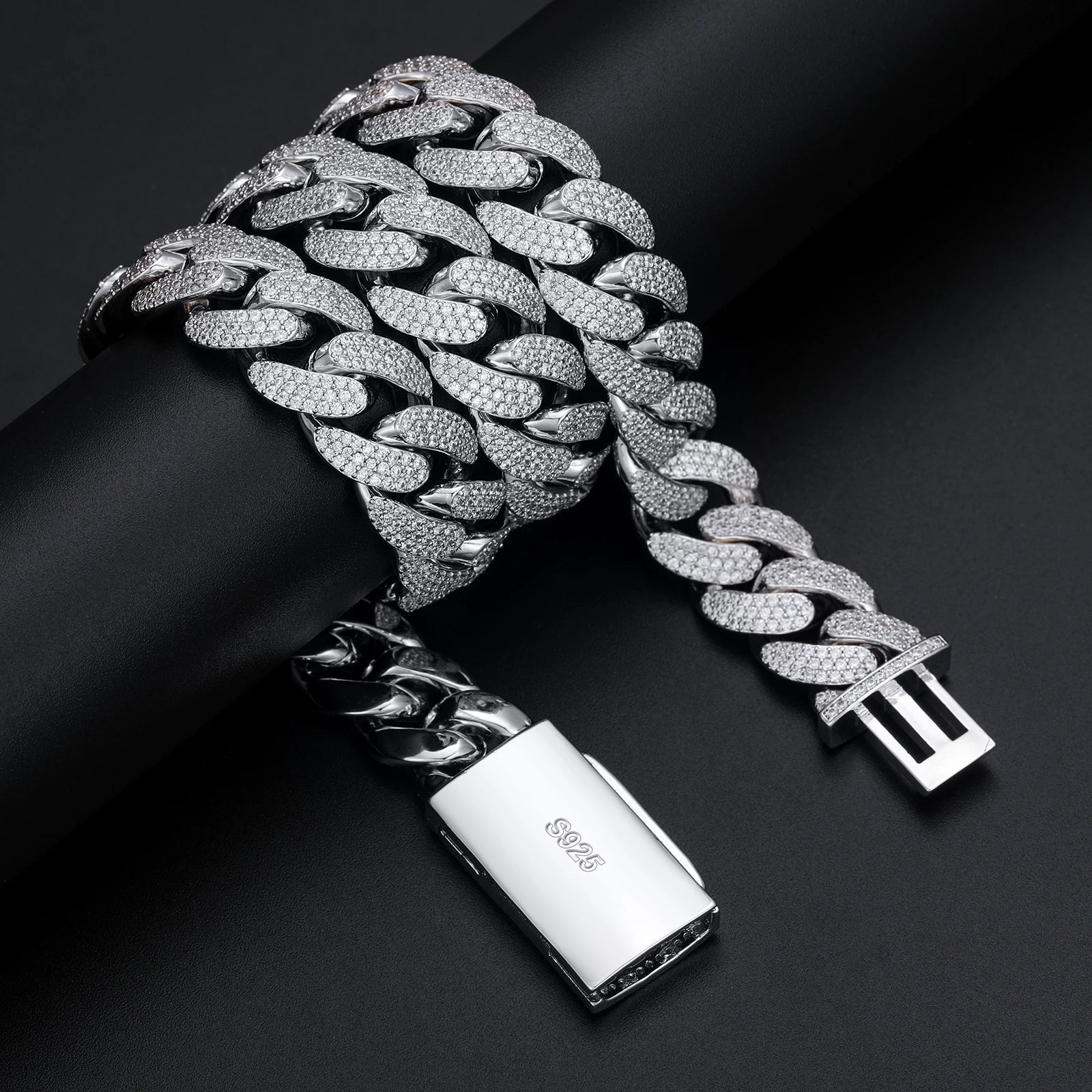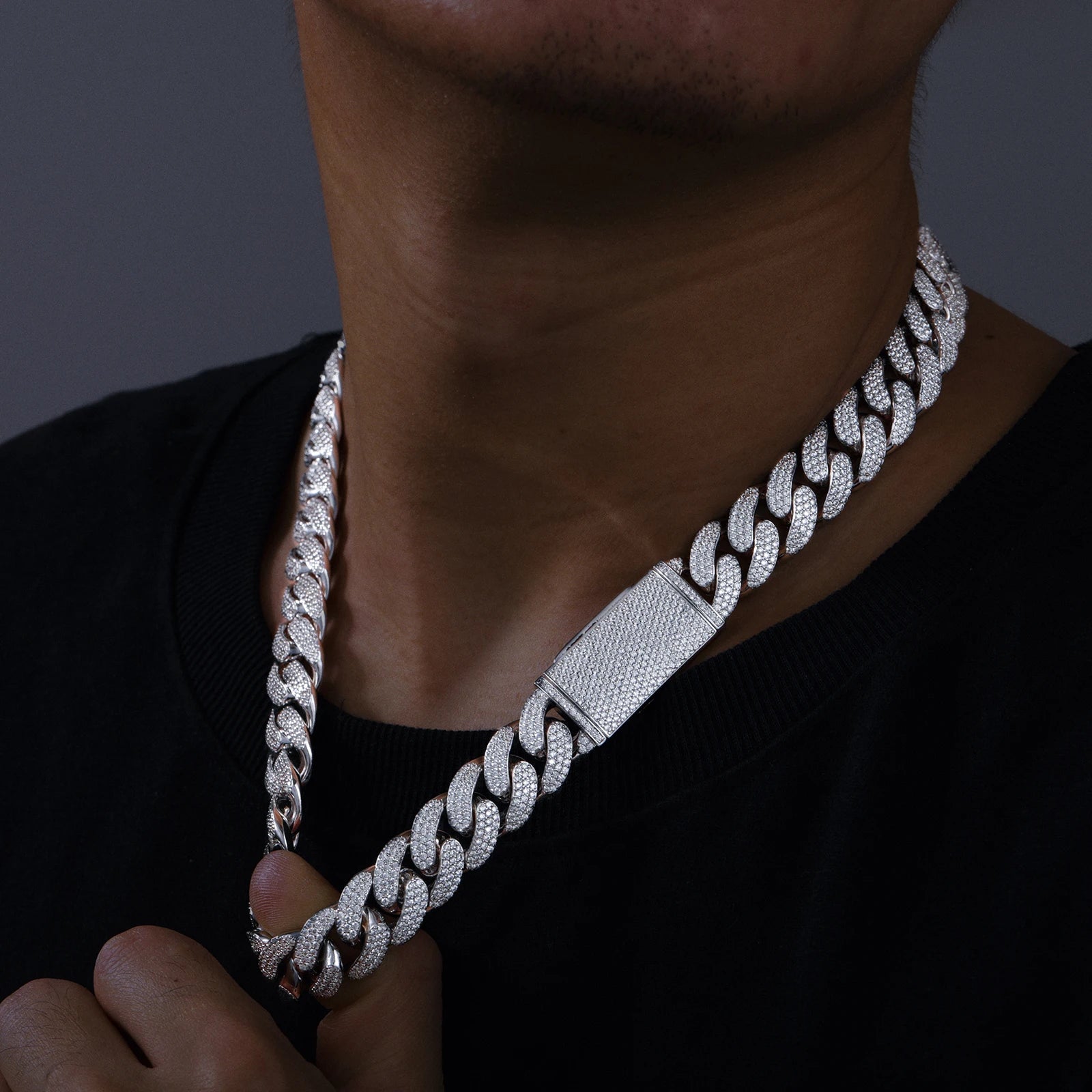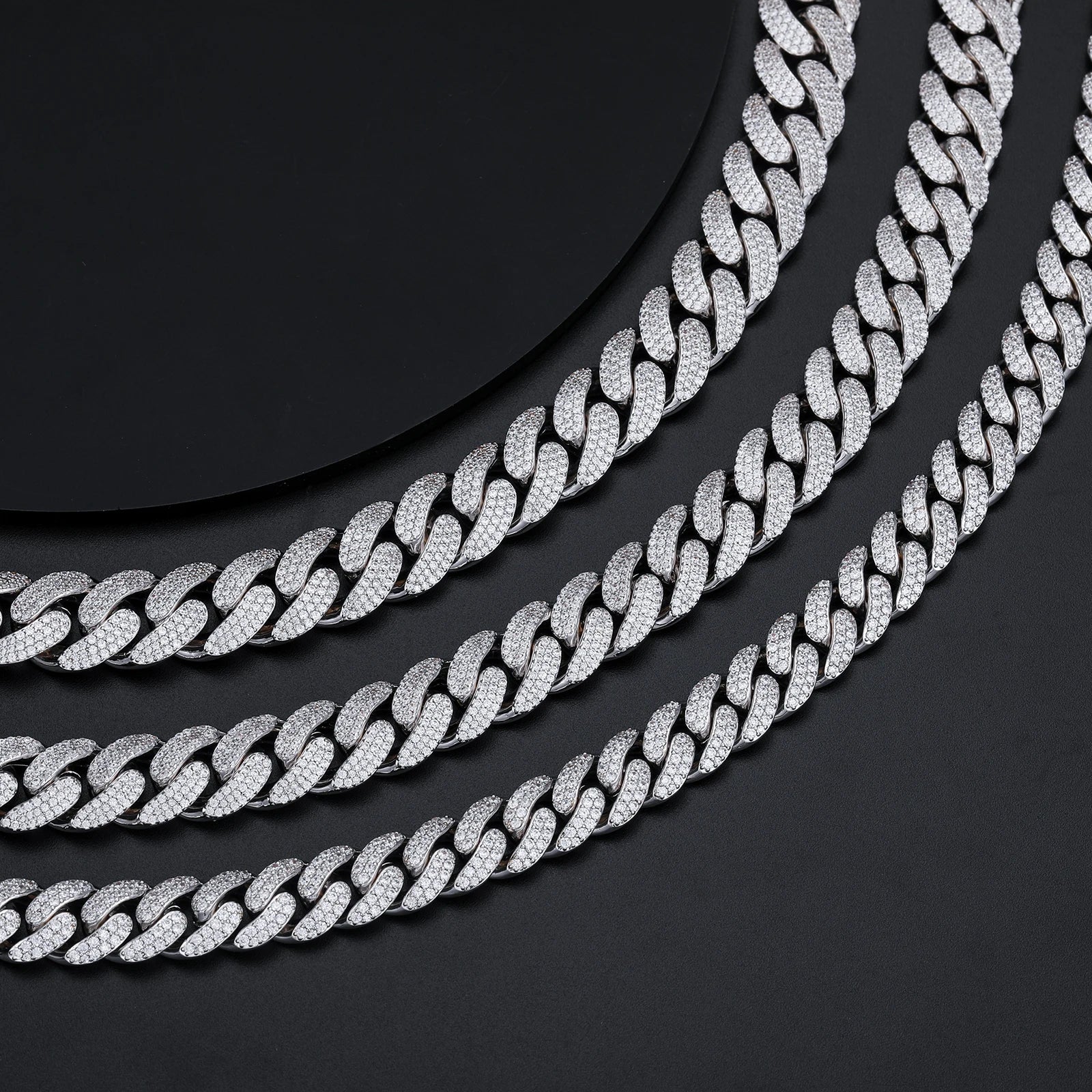 New 8-20mm S925 Sterling Silver Setting Cuban VVS Moissanite Link Miami Chain Necklace For Men Singer Style Rap Hip Hop Jewelry