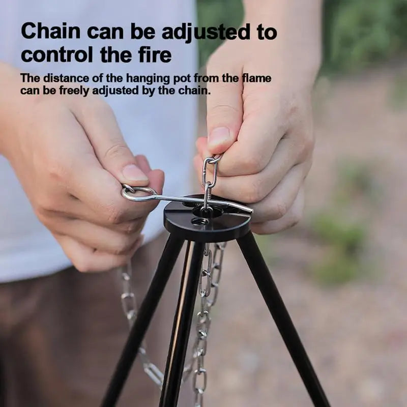5.Outdoor Cooking Necessity: This tripod cooker is an outdoor essential that makes barbecuing, roasting, and stewing convenient. Suitable for camping and other outdoor activities, it accommodates different pot and utensil sizes.