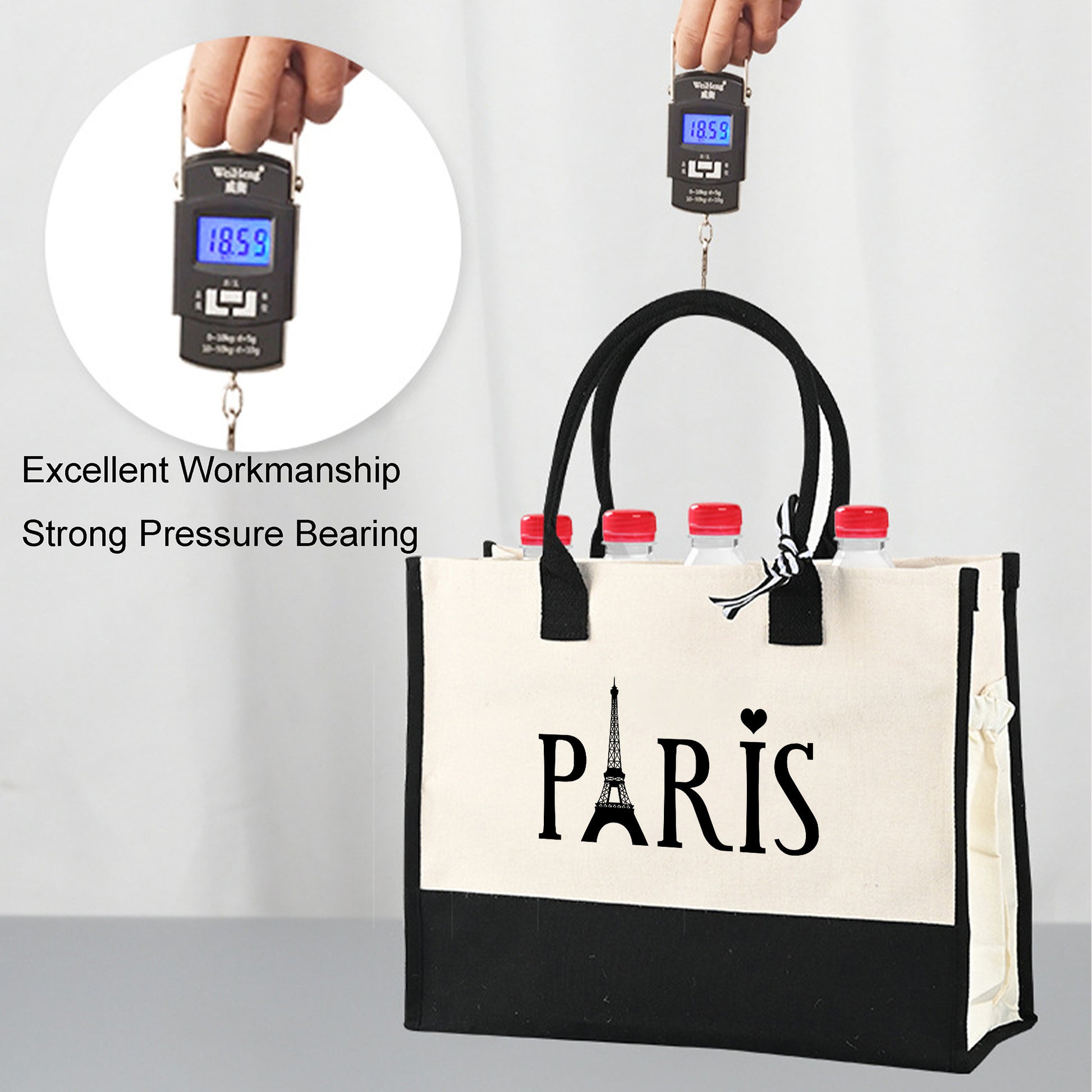 Paris & Mood Pattern Canvas Beach Bag, Versatile Tote Bag, Casual Large Capacity Shopping Tote Bag, Gift Wrapping Bag