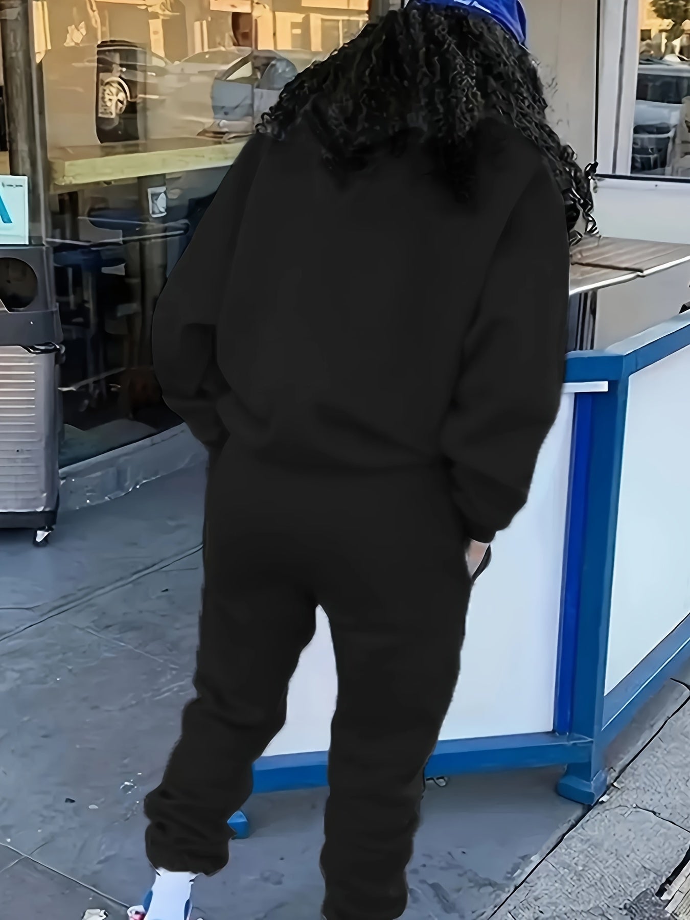 Paris Print Casual Pants Set, Crew Neck Long Sleeve Sweatshirt & Pocket Pants Outfits, Women's Clothing