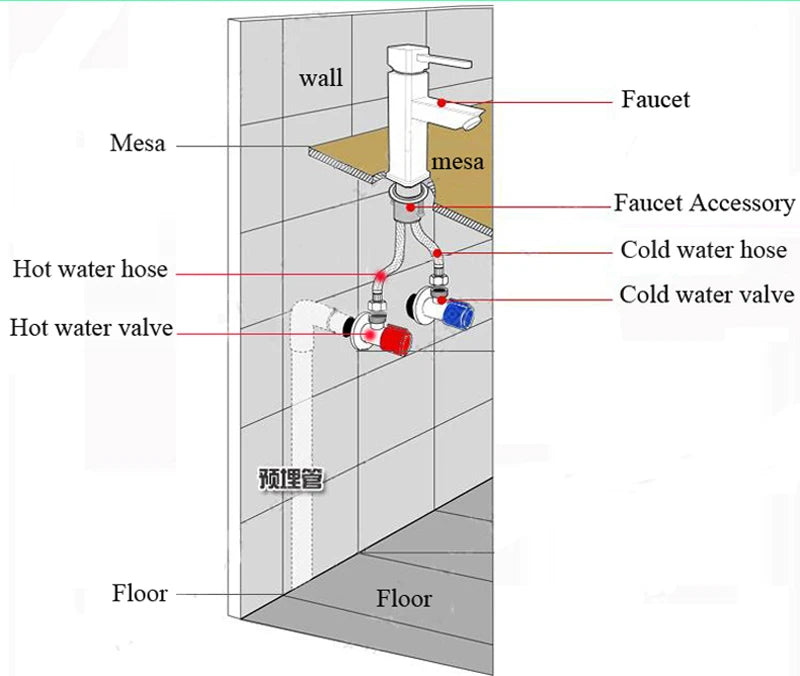 Package: Faucet + Hot cold pipes + Accessory without cover plate