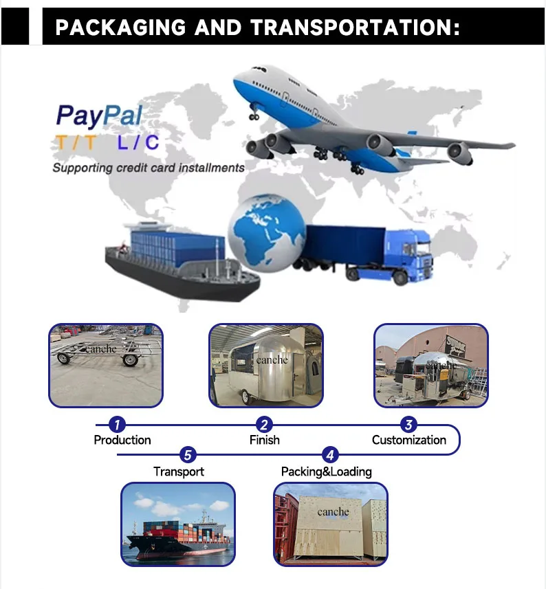 Street Sale use BBQ Food trailer Factory Mobile Pizza Food Truck stainless steel Outdoor Mobile Food Trailer