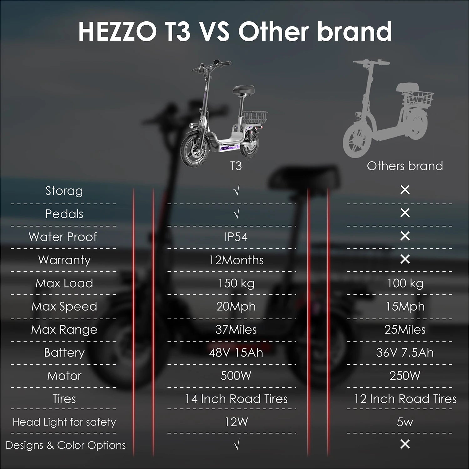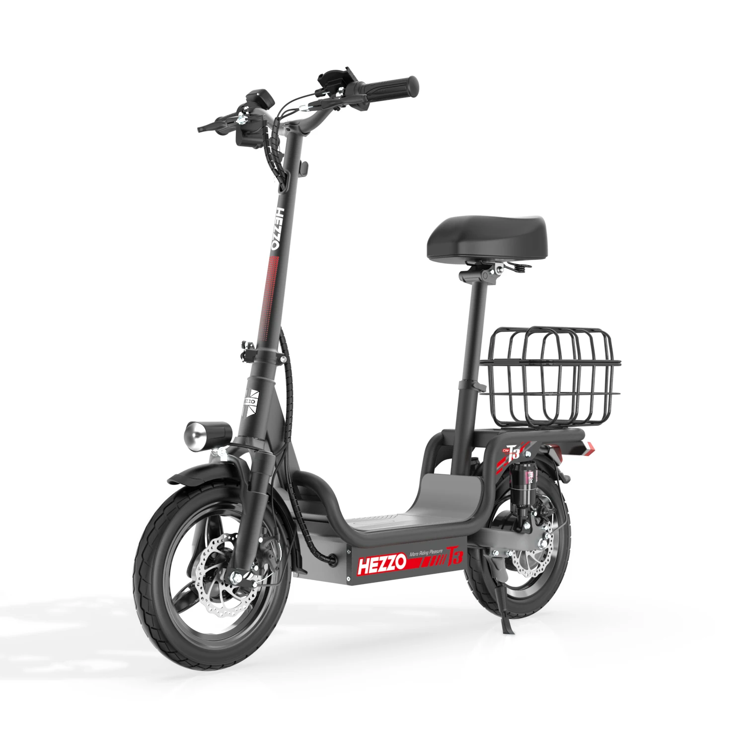 USA EU Stock HEZZO T3 Escooter 48V 500W 15Ah Foldable Moped City Ebike 20Mph Electric Scooters With Basket UL CE Approved