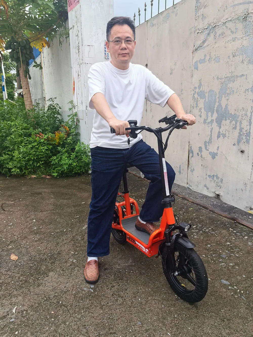T3 is moped portable electric scooter. with front and rear suspension, 14 inch tire , rear shopping basket , it is convenient for shopping , or carry some daily things. handle pole is easy to fold. you can put it into your car.
