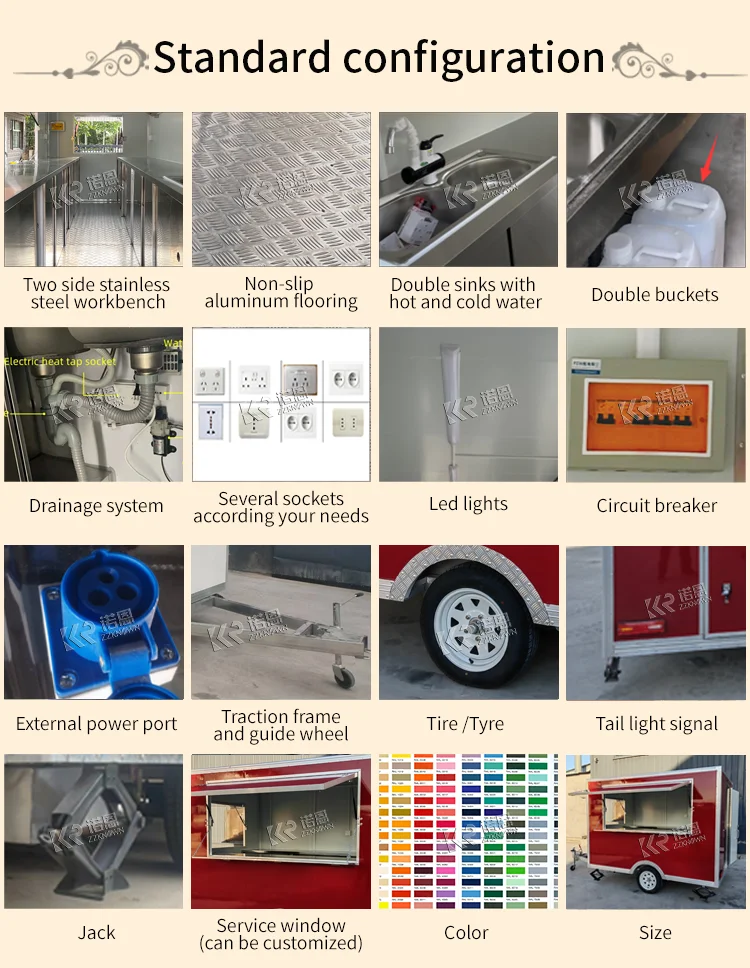 Fast Food Trailer With Fully Kitchen Equipped Concession Catering Trailer Food Truck Standard Configuration:
